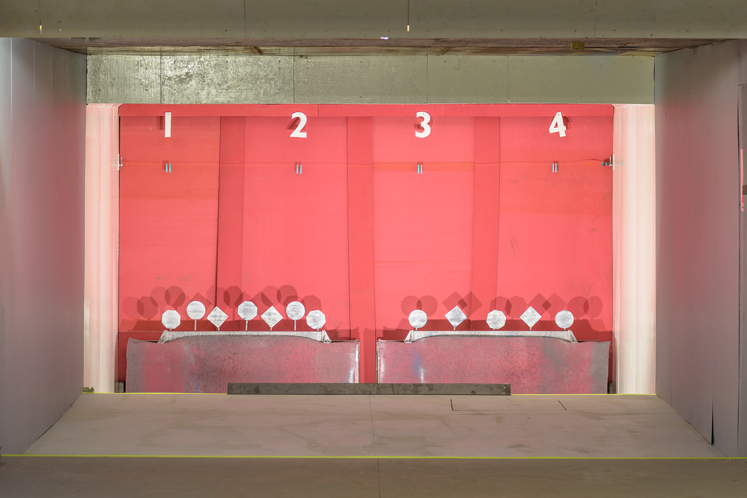 The range backstop comprises hardox steel with a Linatex ballistic rubber curtain to prevent splashback, and is certified for firearms with a muzzle energy of up to 645 joules.