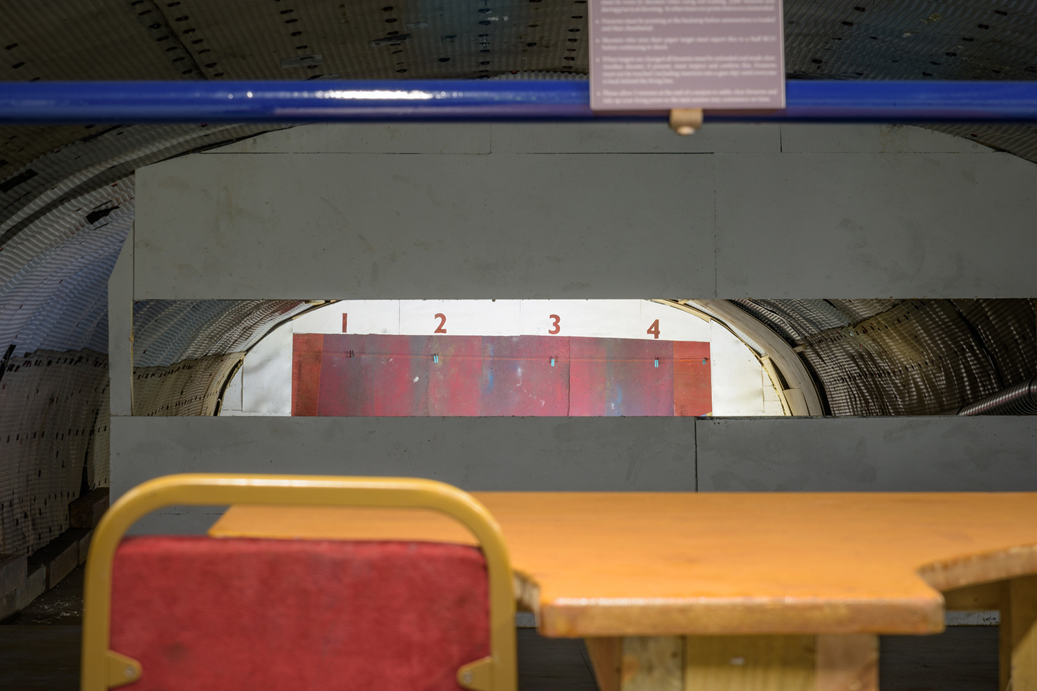 The Tunnel’s 25m rifle range offers four fixed pistol-style firing points for bench-rest or standing shooting with airgun, rimfire rifles, gallery rifles, or black-powder shooting.