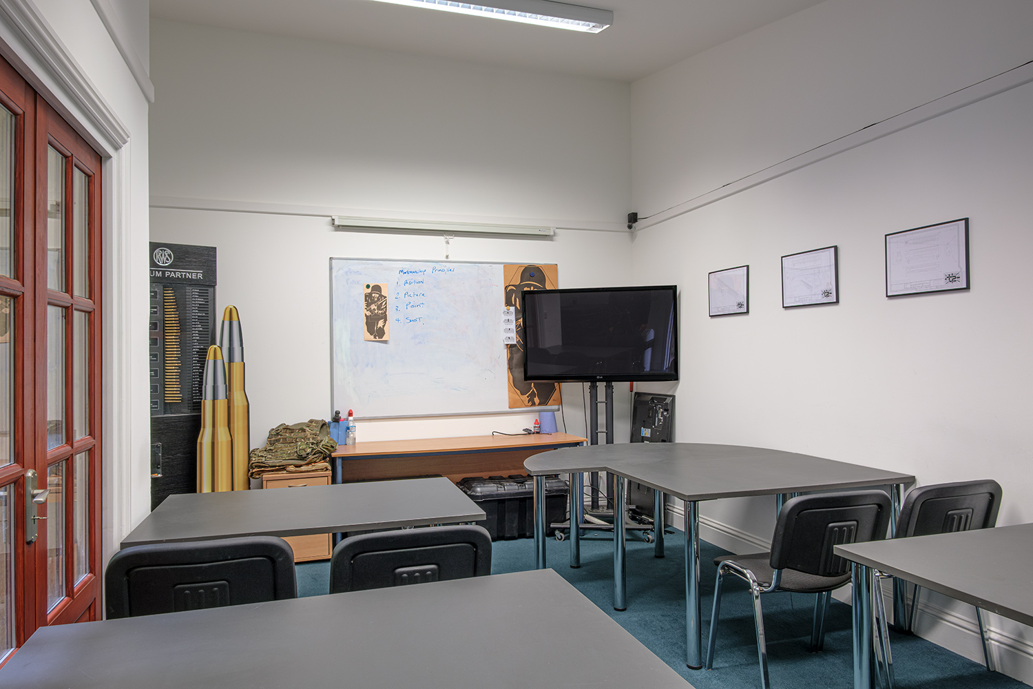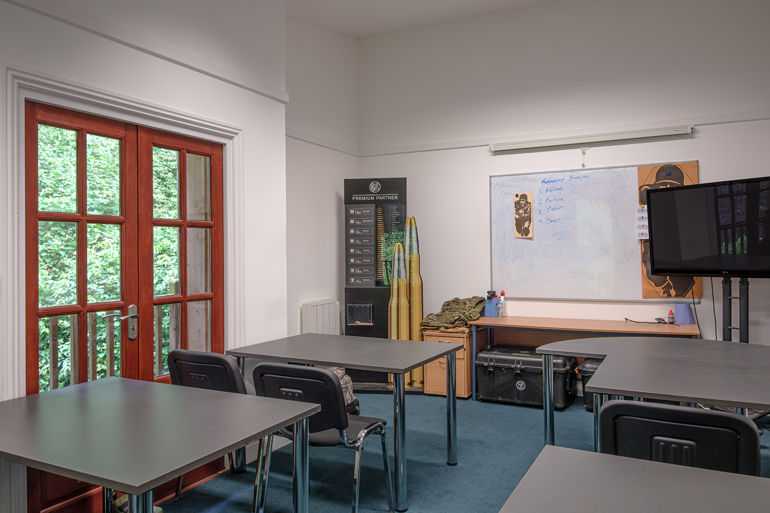 All classrooms can be configured for desk-based work or practical rifle / pistol drills.